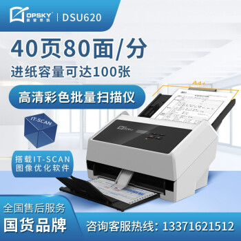 奧普思凱(OPSKY) 饋紙式掃描儀高清彩色雙面連續(xù)大容量自動進紙辦公設備發(fā)票文檔多介質(zhì)掃描 DSU620 掃描儀(40頁80面/分鐘)
